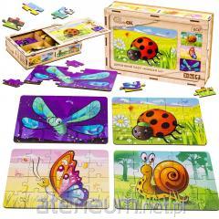 Układanka składa się z elementów o ciekawych i nietypowych kształtach (np. obiekty, organizmy). Gotowa układanka nie będzie miała klasycznego prostokątnego kształtu, natomiast odwzorowywać będzie kształt danego zwierzątka. Przy układaniu warto sugerować się grafiką z pudełka. Wszystkie elementy są zapakowane w drewniane opakowanie, które chroni zawartość. Produkt może być oryginalną ozdobą każdego pokoju.