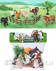 Zestaw figurek zwierząt, które można znaleźć na farmie. W zestawie znajduje się 6 figurek różnej wielkości m.in.: krowa, koń, kogut, kura, gęsi, a także roślinność i ogrodzenie#&Produkt zapakowany w przezroczysty worek.
