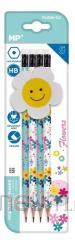 Ołówek sześciokątny HB z dodatk. gumką Kwiaty 4szt