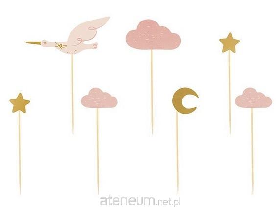 Dekoracje do muffinek - Bocian, mix wzorów i kolorów, wysokość ok. 11 -12 cm.(1 op. / 7 szt.)