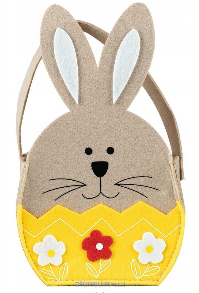 Żółty koszyczek wykonany z filcu udekorowany białym zajączkiem. Wymiar koszyka: 16x22cm.
