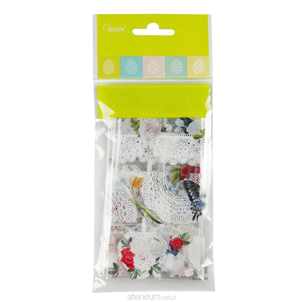 Koronkowe wzory owijek termokurczliwych przełamany wiosennym motywem kwiatów i motyli. Idealne do błyskawicznego przygotowania wielkanocnych pisanek - nadadzą jajkom unikatowy wygląd. Opakowanie zawiera 9 szt. owijek.