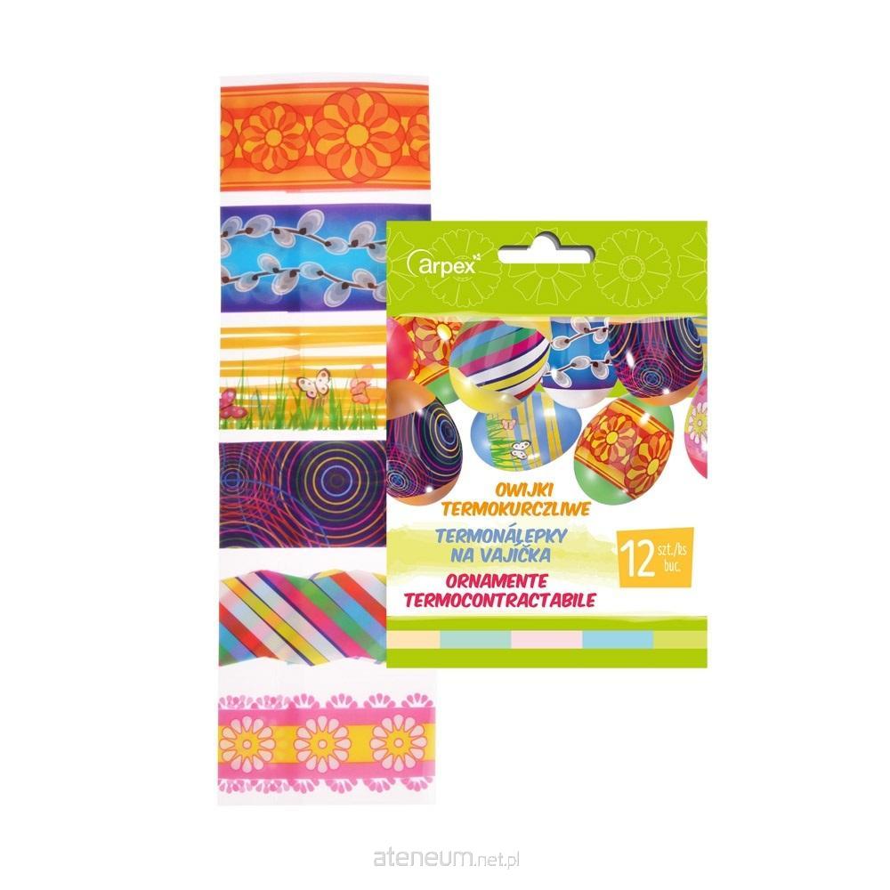 Owijki termokurczliwe z różnymi kolorowymi wzorami idealne do błyskawicznego przygotowania wielkanocnych pisanek. 12 sztuk. Na opakowaniu znajduje się instrukcja użycia.