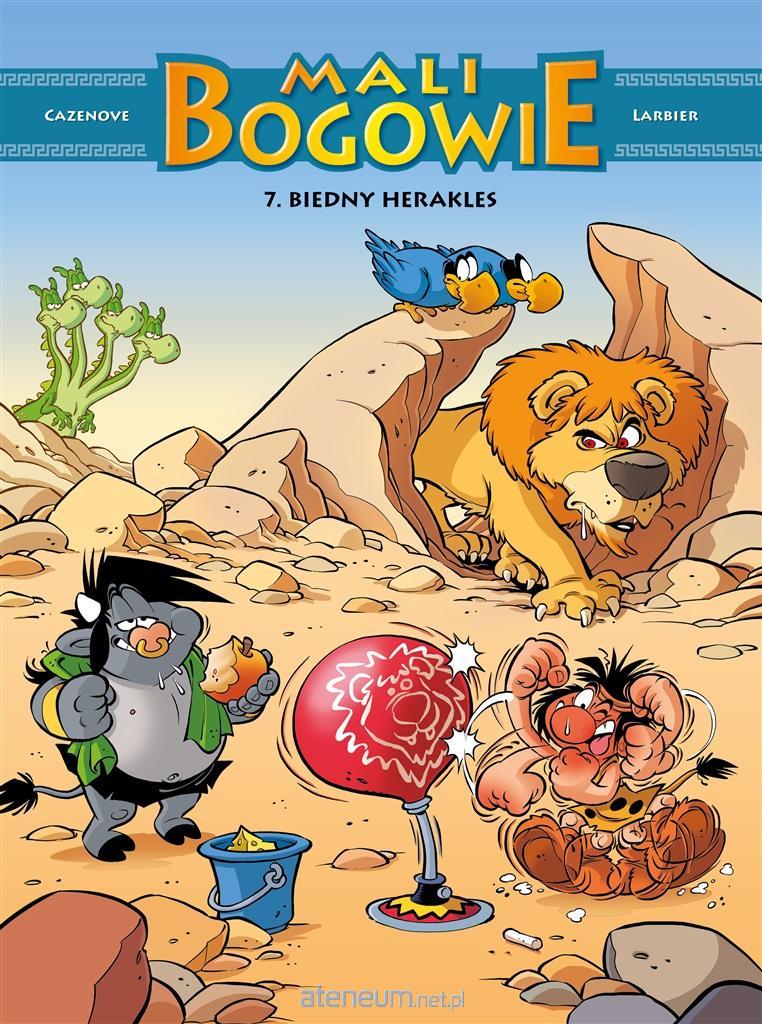 Siódmy album prześmiesznych przygód zwariowanych kandydatów na bogów i herosów starożytnego Olimpu. Dawno temu Herakles dostał listę dwunastu prac, które ma wykonać, aby zdobyć sławę. Nie jest ani silny, ani inteligentny, ale mimo to z uporem stara się dowieść, że zasługuje na miano bohatera. Czekają go pojedynki z potworami i wędrówka na kraniec świata. Czy uda mu się wypełnić chociaż jedną z prób? Autorami historii o psotnych istotach z mitów są scenarzysta Christophe Cazenove, znany w Polsce między innymi z bestsellerowej serii "Sisters", oraz rysownik Philippe Larbier, który stworzył ilustracje do takich humorystycznych opowieści jak "Chats, chats, chats" czy "Nina" oraz scenariusz kryminalnego cyklu dla dzieci "Les Enigmes de La".