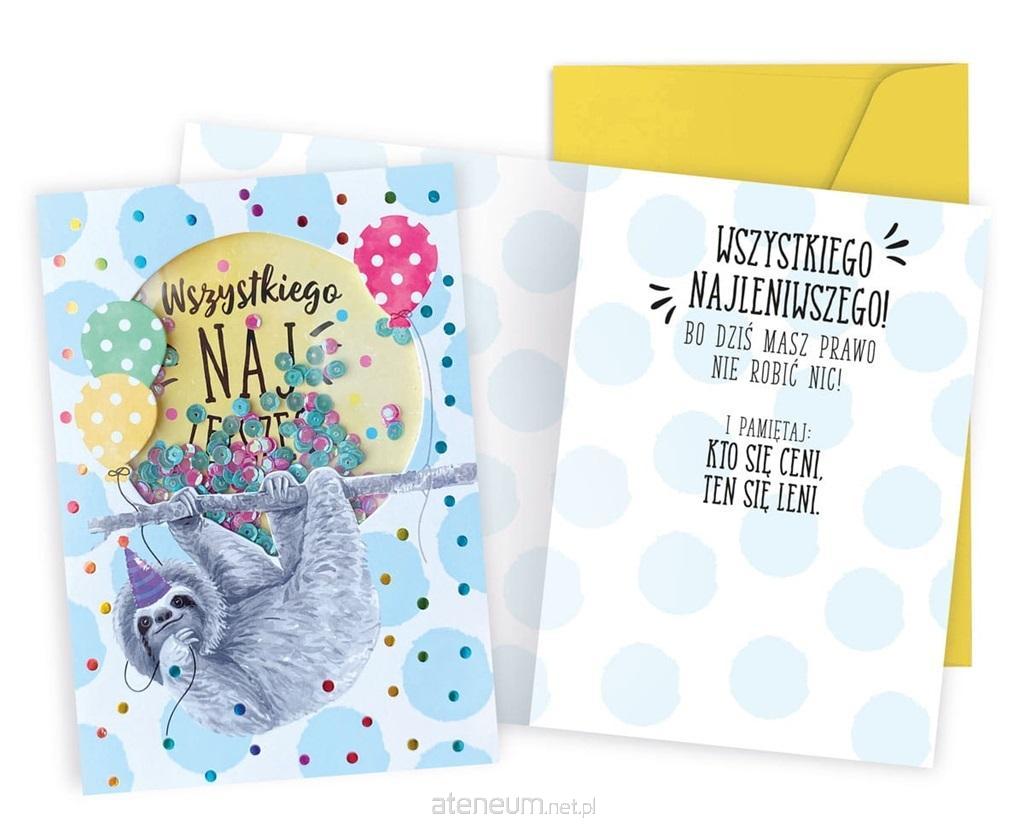 Każda kartka z serii Konfetti Kukartka w zależności od wzoru posiada element wypełniony konfetti ( brokat, złote gwiazdki, cekiny, kolorowe kuleczki). Oprócz tego, kartki z tej serii są zabawne, kolorowe na zewnątrz i w środku, mają też dodatkowe dekoracje, w zależności od wzoru: tłoczenia, kolorowe folie metaliczne, elementy biżuteryjne, wstążeczki itp. Cechy szczególne: wielkość: B6, 16.6 x 11.7 cm po złożeniu, koperta: w zestawie, kolorowa.