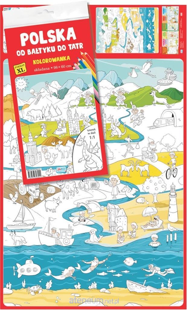 Ze składaną kolorowanką "Polska. Od Bałtyku do Tatr" dzieci mogą wyruszyć w swoją pierwszą podróż po naszym kraju. Poznają przy tym zwierzęta, budowle, symbole i postacie charakterystyczne dla poszczególnych regionów i miast Polski. Kredki w dłoń! Ogromny, ilustrowany arkusz o wymiarach 98 x 60 cm jest do dyspozycji małego artysty. Kolorowanie zapewnia doskonałą rozrywkę, a przy tym rozwija zdolności manualne, staranność oraz koordynację wzrokowo-ruchową. To znakomite przygotowanie do szkoły, a także możliwość wyciszenia.