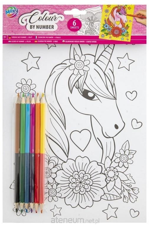 Kolorowanie według numerów. Format A4, w zestawie 6 arkuszy i 6 kredek.