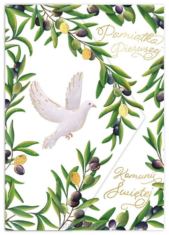 Karnet z kieszonką na pieniądze w formacie A5, składany z trzech. Złocony i tłoczony, teksy życzeń w środku. Wydrukowany na wysokiej jakości papierze. W zestawie koperta.