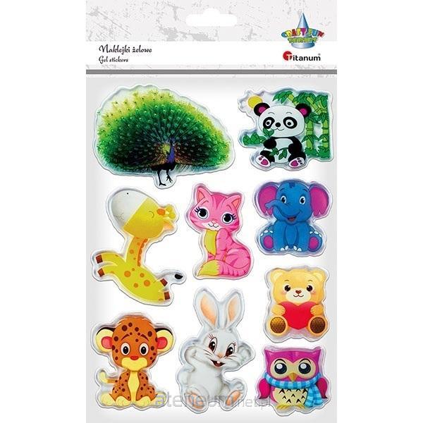 Naklejki żelowe - zoo, małe zwierzątka + paw, 9 szt.