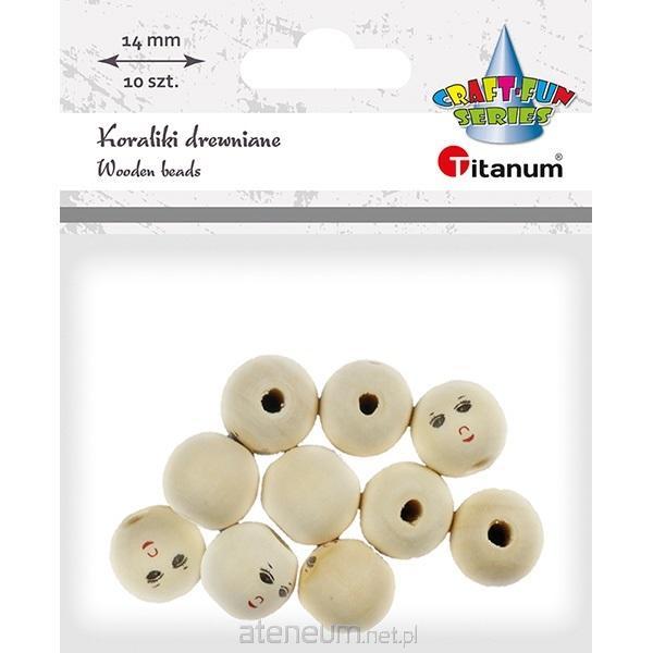 Koraliki drewniane okrągłe z twarzą ?14mm otwór ?4mm naturalne drewno 10szt.