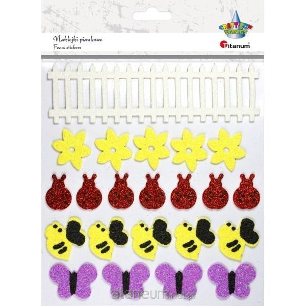 Naklejki piankowe brokatowe: płotek, biedronki, pszczółki, motylki, 22 szt.