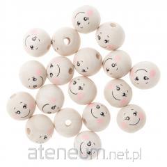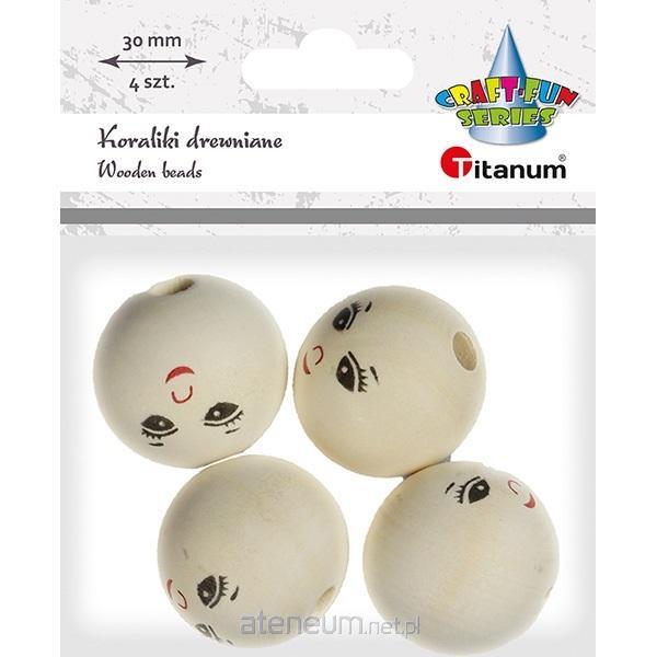 Koraliki drewniane okrągłe z twarzą 30mm otwór 6mm naturalne drewno 4szt.