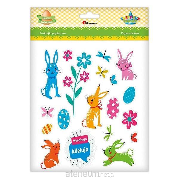 Naklejki papierowe: zajączki, pisanki, kwiaty, motyle, ważki, napis "Wesołego Alleluja", 19 szt.