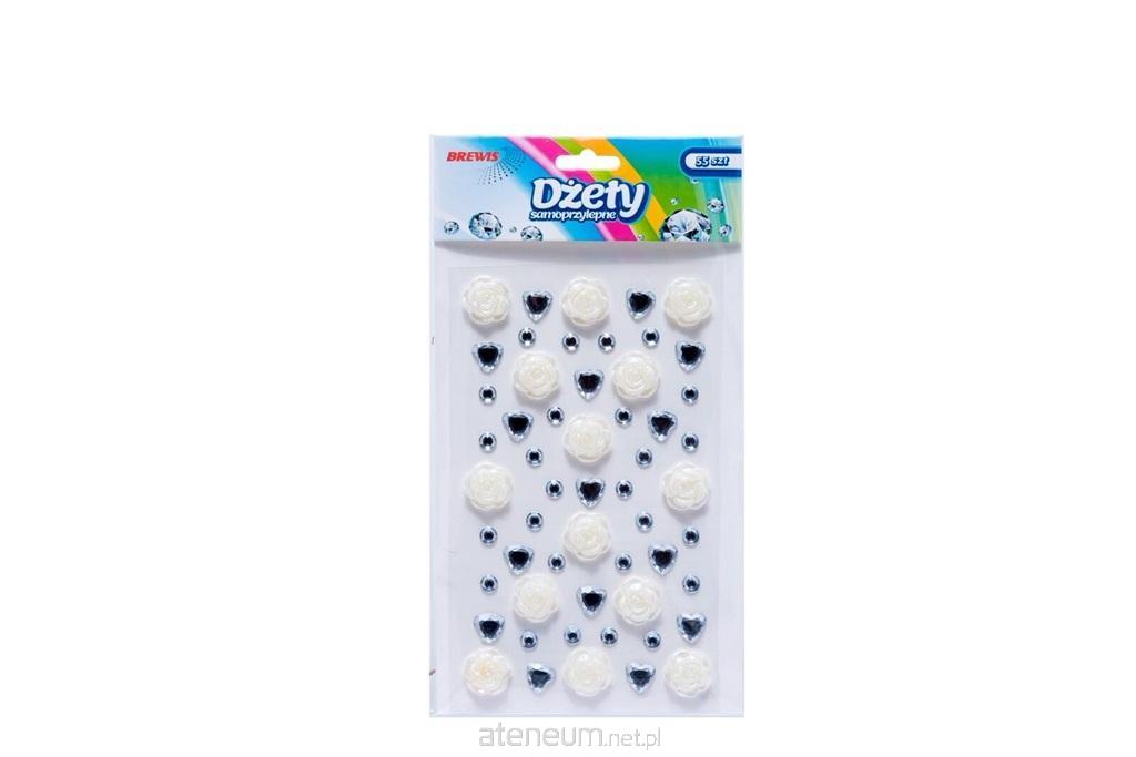 Dżety samoprzylepne serca i róże ilość: 55 szt kolor: biały, srebrny
