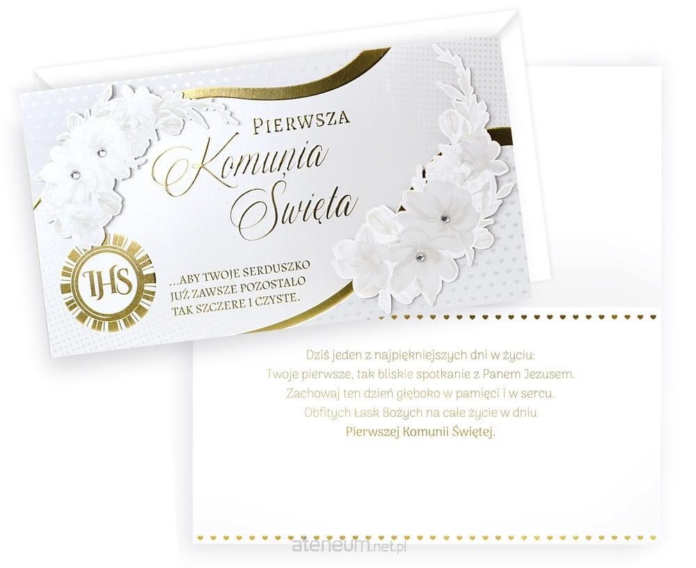 Każda kartka w kolekcji Passion Moments to małe arcydzieło - wyjątkowe i niepowtarzalne, piękne wizualnie. Kartki PM są bardzo bogato zdobione, a jednocześnie skromne i stylowe, cały efekt tkwi w detalach i doskonałym wykonaniu. W zależności od wzoru, na kartkach znajdują się dekoracje ze złotej, srebrnej, perłowej lub holograficznej folii, a także doklejki biżuteryjne, kokardki, brokat, laserowe wycięcia, wstążeczki i inne dodatki. Wnętrze karnetu to zawsze atrakcyjna grafika i tekst życzeń. Kartki mają w komplecie dopasowaną kopertę. Cechy szczególne: zdobienie: przynajmniej dwie folie (metaliczne/perłowe/holograficzne), brokat, elementy doklejane, wycięcia laserowe, wstążeczki - w zależności od wzoru, wnętrze: z delikatną grafiką, wyjątkowe życzenia w środku, w komplecie: dopasowana kolorystycznie koperta, okazja: komunia Wymiary karnetu po złożeniu: 11,4 x 21,5 cm.