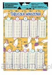 Przednia strona to pełna tabliczka mnożenia w zakresie do 100, strona tylna to 8 pustych pól do utrwalania i ćwiczenia działań.