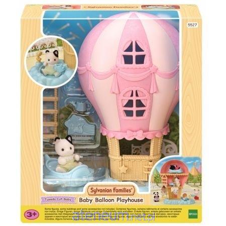 W domku balonie Sylvanian Families mały kotek z czarnym uszkiem może się naprawdę wyszaleć. Mały domek ma trzy piętra, na których można się cudownie bawić. Na pianinie mały kotek z czarnym uszkiem może grać wesołe piosenki, a łóżeczko w kształcie samolotu zaprasza do snu po pełnym wrażeń dniu. Do wnętrza domu prowadzą drzwi, a po małej drabince wchodzi się bezpośrednio z parteru na piętro. Obok domku znajduje się mały basen. Domek jest częścią parku rozrywki Sylvanian i można go łączyć z innymi artykułami z tej serii. Zestaw zawiera domek balon, łóżko w kształcie samolotu, pianino, konewkę, drabinę i małego kotka z czarnym uszkiem. Głowa, ramiona i nogi figurki o wielkości ok. 4 cm są ruchome, ubranka można zakładać i zdejmować. Produkt przeznaczony dla dzieci od trzeciego roku życia.