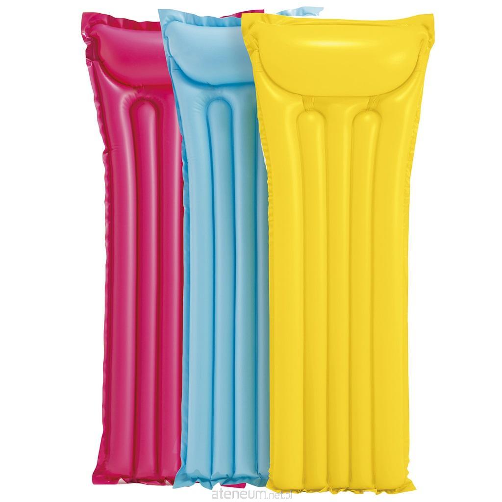 Jednokolorowy materac do pływania. Produkt występuje w kolorach: niebieski, różowy, żółty