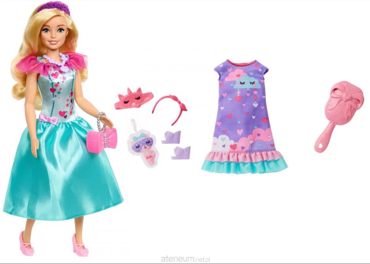 Lalka Deluxe Moja Pierwsza Barbie ,,Malibu" Roberts ma dwa stroje i mnóstwo kolorowych akcesoriów z dwoma motywami: przyjęcia albo piżama party.