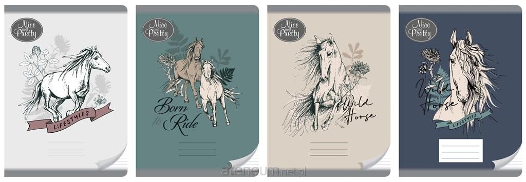 Zeszyt A5, posiada 32 kartki o gramaturze 70 g/m2 w linię. Charakteryzuje się estetycznym, lakierowanym wykończeniem i modną grafiką na okładce z serii Nice&Pretty. Na zewnętrznej stronie okładki: imiennik - miejsce na wpisanie imienia, nazwiska, klasy.