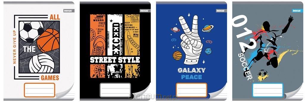 Zeszyt A5, posiada 32 kartki o gramaturze 70 g/m2 w linię. Charakteryzuje się estetycznym, lakierowanym wykończeniem i modną grafiką na okładce idealna dla chłopca. Na zewnętrznej stronie okładki: imiennik - miejsce na wpisanie imienia, nazwiska, klasy.