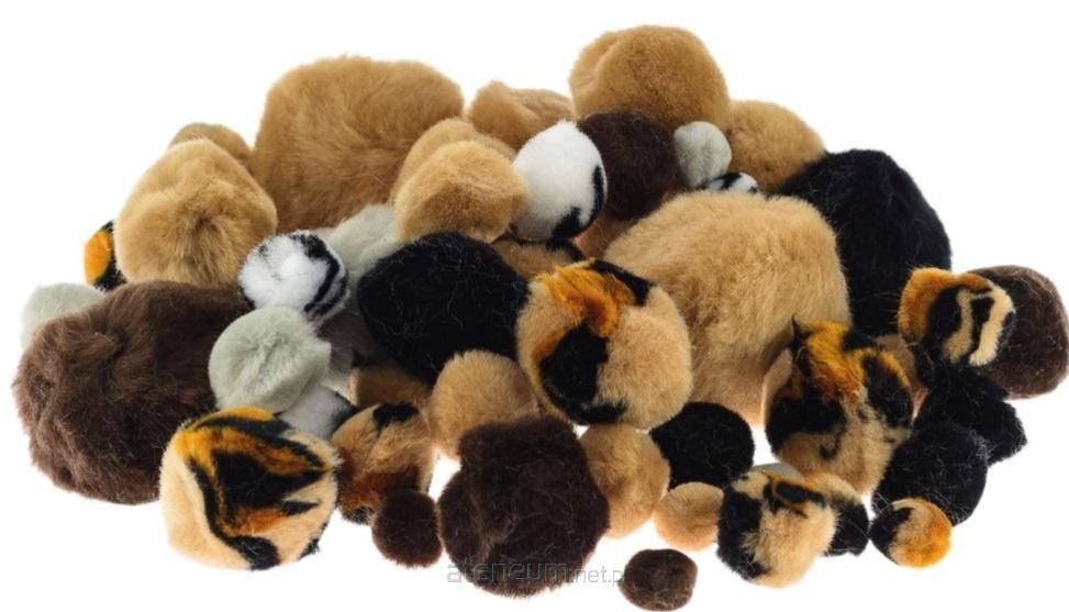 Pompony zwierzęta rozmiar: 10, 20, 30, 50 mm ilość: 54 szt kolor: mix