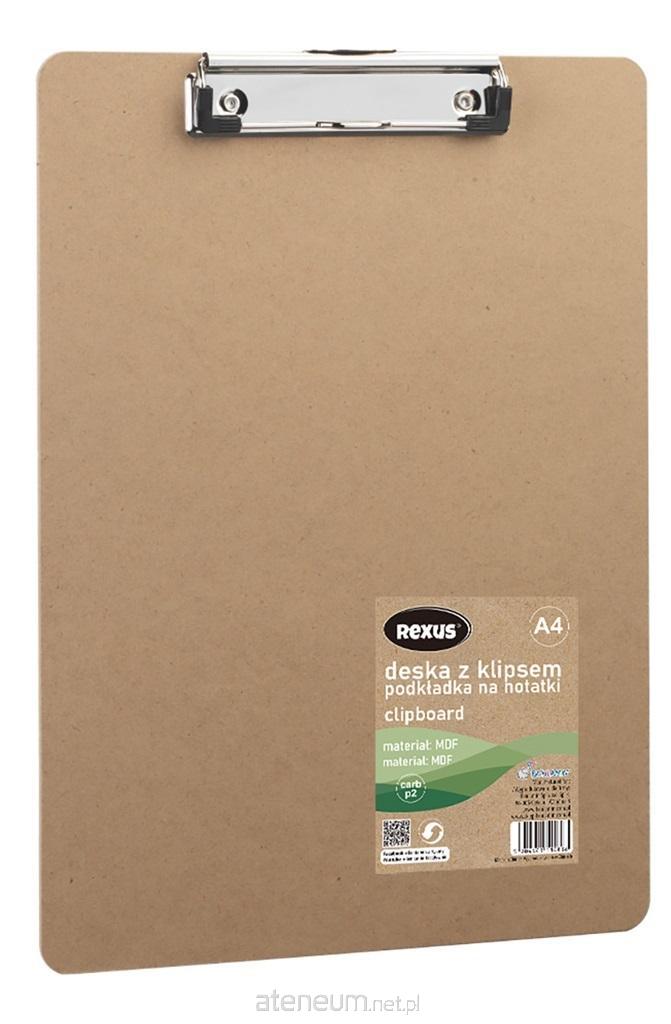 Deska z klipem w formacie A4, wykonana z mteriału MDF. Posiada niklowany klip z plastikowymi narożnikami i zawieszką.