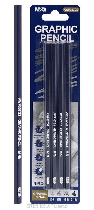 Zestaw ołówków artystycznych na blistrze, 4 szt.: 2H, 2B, 6B,14B.