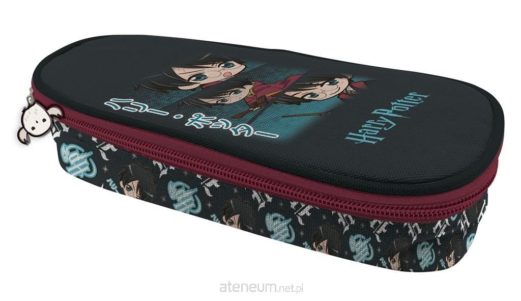 Owalny piórnik szkolny z klapką to niezbędny przedmiot uczniów. Wewnątrz na klapce znajdują się gumowe uchyty na przybory do pisania oraz skrzydło, na którym jest kieszonka z siateczki zamykana zamkiem błyskwicznym i kolejne gumowe uchwyty. Komora główna jest pojemna, korpus dodatkowo usztywniany. Na piórniku znajduje się motyw z serii Harry Potter