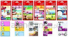 Naklejki na zeszyty. Na arkuszu znajduje się 10 sztuk kolorowych etykiet z serii Minnie Mouse. Gwarantują idealny sposób na oznaczenie zeszytów oraz podręczników dla dzieci i nastolatków. 2 wzory.
