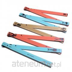 Linijka składana z kolekcji Croc Croc. Kształty wewnętrznych krawędzi linijki przywodzą na myśl sympatycznego, niegroźnego krokodyla, dając jednocześnie możliwość odrysowania nietypowych wzorów. Długość 30 cm, po złożeniu 15 cm. Kolor żółto zielony. Idealna do piórnika. Blokada ramion zapobiega rozłożeniu linijki i jej przypadkowemu uszkodzeniu. Czytelna skala ułatwia kreślenie szczególnie tym, którzy pierwszy raz mierzą się z pracą z linijką.