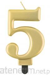 Świeczka cyferka 5 Beauty&Charm metalik złota 8cm