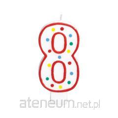 Świeczka urodzinowa cyferka 8 biała w kropki