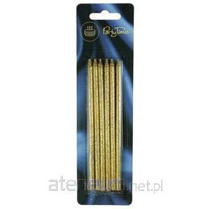 Złote brokatowe świeczki długości 14 cm. Opakowanie zawiera 6 sztuk.