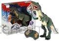 Interaktywny Dinozaur Na Baterie Zabawka-dinozaur jest doskonałym odwzorowaniem ogromnego Tyranozaura, żyjącego około 125 - 100 milionów lat temu. Dinozaur ten był jednym z największych lądowych drapieżników w historii . Ten prehistoryczny stwór był ogromny - jego długość osiągała aż 13 metrów. Zabawka charakteryzowana na kopię Tyranozaura posiada długą, prostą czaszkę, a także masywną, muskularną budowę. Zasilana jest bateriami 3x AA 1,5 V, które są dołączone do zestawu. Po umieszczeniu ich w zabawce oraz przyciśnięciu przycisku tuz obok ogona duży dinozaur zaczyna ryczeć i ruszać głową, czemu towarzyszy otwieranie paszczy, ukazujące budzące grozę zębiska. Efekty świetlne, na przykład błyskające oczy tylko potęgują te niecodzienne wrażenia. Chodzący dinozaur może być nie tylko rewelacyjną zabawką - sprawdzi się również w roli pomocy naukowej. Dzięki takiemu przedmiotowi wytłumaczenie dziecku faktów związanych z prehistorią i mitycznymi stworzeniami będzie o wiele łatwiejsze, ponadto rozwinie wiedzę i wyobraźnię malucha, zachęcając go do samodzielnego zdobywania informacji na te tematy. Dinozaur posiada opcję zdalnego Sterowania. Dołączony do zestawu pilot posiada dwa aktywne przyciski. Przyciskiem po lewej stronie uruchamiamy dźwięki oraz ruszanie głową. Drugi przycisk to poruszanie się dinozaura do przodu. Pilot zasilany jest bateriami 3xAA- Brak w zestawie. Zabawka wykonana jest z certyfikowanego materiału, jakim jest wytrzymały na częste użytkowanie plastik. Pomimo groźnego wyglądu, zabawka pozbawiona jest ostrych i niebezpiecznych dla dzieci elementów lub zakończeń. Kolorystyka dinozaura nawiązuje do jego odpowiednika, co podnosi poziom realności zabawki. Dinozaur zapakowany jest w kartonowe pudełko. Uważamy, że jest to idealny pomysł na prezent dla małego pasjonata dinozaurów i prehistorii. Wymiary Dinozaura: 50 cm x 28 cm Wymiary opakowania: 37 cm x 30 cm x 12 cm