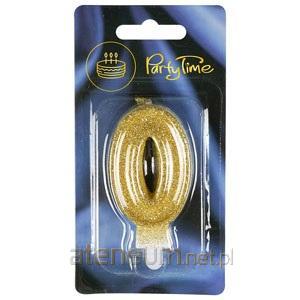 Świeczka cyferka brokatowa na podstawce. Wysokość świeczki 7,5 cm.