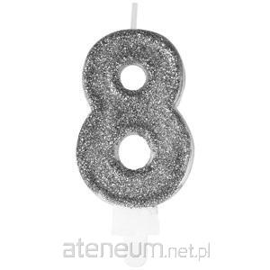 Świeczka cyferka brokatowa na podstawce Wysokość świeczki 7,5 cm Dostępne kolory: złoty, srebrny