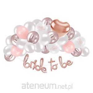 Zestaw dekoracji na wieczór panieński. W skład zestawu wchodzi girlanda balonowa do samodzielnego wykonania. W opakowaniu znajdują się: - 3 białe balony z napisem "Bride To Be" o średnicy 25 cm po nadmuchaniu - 3 różowe balony z napisem "Bride To Be" o średnicy 25 cm po nadmuchaniu - 16 białych balonów metalizowanych o średnicy 25 cm po nadmuchaniu - 8 balonów z efektem chromu w odcieniu różowym o średnicy 30 cm po nadmuchaniu - 1 różowy balon foliowy w kształcie serca w rozmiarze 45 cm po nadmuchaniu - foliowy napis dmuchany "bride to be" - taśma do wykonania girlandy z balonów. Duży zestaw dekoracyjny na przyjęcie dla przyszłej Panny Młodej. Oryginalna ozdoba na wieczór panieński. Idealny jako uzupełnienie ścianek do zdjęć, dekoracji sali, mieszkania. Prosta do samodzielnego wykonania ozdoba.