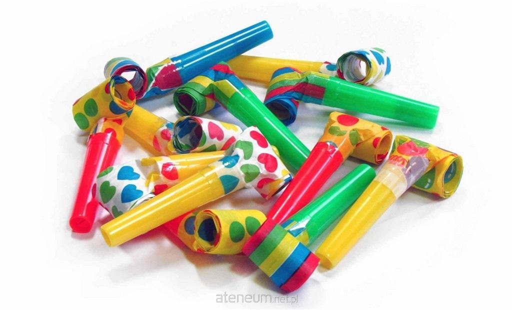 Zestaw 3 papierowych gwizdków. Wymiar rozwiniętego gwizdka 2,5cm x 35cm.