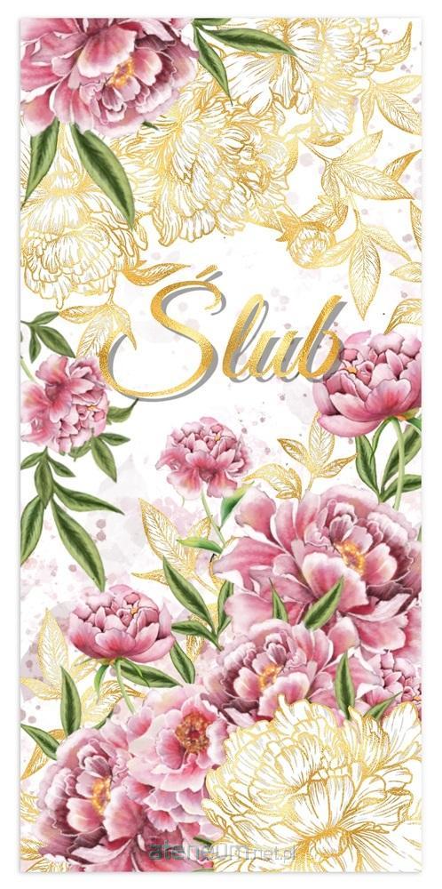 Złocony karnet - voucher w formacie DL, składany w poziomie, teksy życzeń w środku. Wydrukowany na wysokiej jakości papierze. W zestawie koperta.