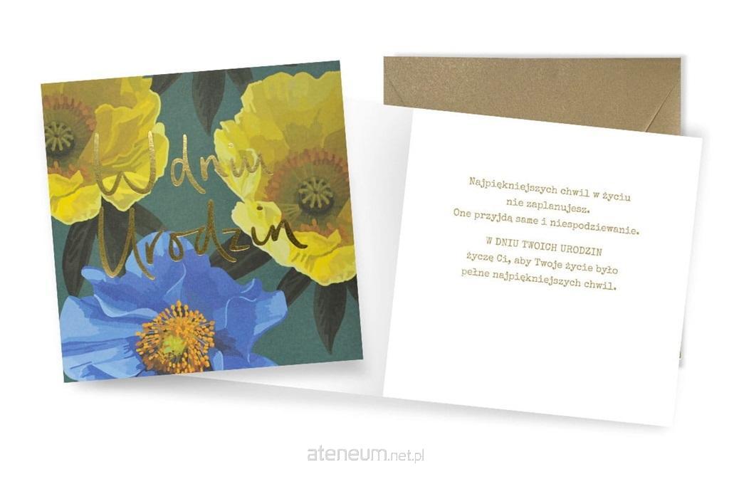 Kartka z serii Quadro to idealny pomysł na piękną pamiątkę. Każda kartka QRP zdobiona jest złotą folią oraz wyróżnia się przepięknym kwiatowym motywem na froncie. Środek kartki posiada specjalnie dopasowane życzenia z miejscem na własną dedykację. Całość idealnie dopełnia dopasowana kolorystycznie koperta Cechy szczególne: wielkość: 15.5 x 15.5 cm po złożeniu koperta: dopasowana koperta kraft zdobienia: złota folia okazja: urodziny