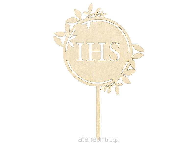 Drewniany topper IHS, wymiary ok. 15.5 x 23 cm.