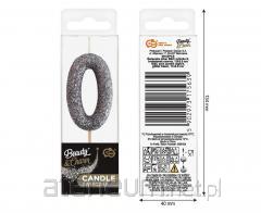 Świeczka piker 0 czarna brokatowa 11x3.5 cm