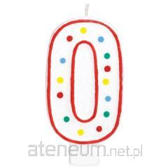 Świeczka urodzinowa cyferka 0 biała w kropki
