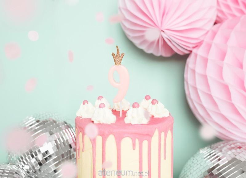 Świeczka urodzinowa Cyferka 9 w kolorze jasnoróżowym, rozmiar ok. 9.5 cm.