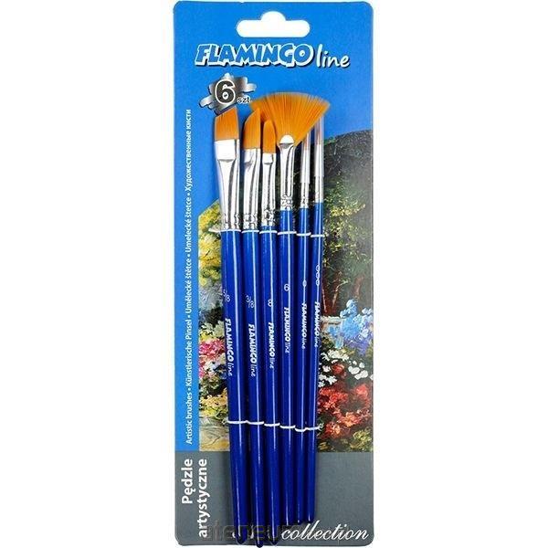 Zestaw pędzli artystycznych z włosiem syntetycznym. Idealnie nadają się do bardzo precyzyjnego malowania. Gwarantują niezwykłą precyzję, przydatną przy kreowaniu wszelkiego rodzaju niewielkich detali i wykończeń. Idealne do zastosowań szkolnych, domowych oraz dla artystów na każdym poziomie zaawansowania. Doskonale nadają się do farb olejnych, akrylowych, akwarelowych, gwaszy oraz farb do tkanin. Wytrzymałe drewniane uchwyty z oznaczeniem grubości pędzla. Różne końcówki i grubości włosia: okrągła NR 000 i 0, płaska wachlarzowa NR 6, płaska zaokrąglona NR 8, płaska ścięta NR 3/8 i 5/8. Pakowane w blister.