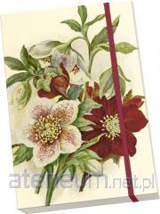 Ozdobny notatnik z elastyczną okładką w linie. W środku znajdują się 192 strony, z czego 8 jest perforowanych, aby można je wyrwać. Dobrej jakości papier, który jest w kolorze kości słoniowej. Notatnik posiada wstążkę-zakładkę, gumkę do zamykania, uchwyt na długopis oraz wewnątrz tylnej okładki kieszeń-kopertę.