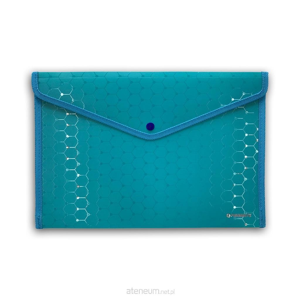 Koperta wykonana z polipropylenu o grubości 0,40 mm. Powierzchnia koperty matowa z mieniącą się fakturą, krawędzie obszyte kolorową taśmą. Kod EAN na każdej sztuce.