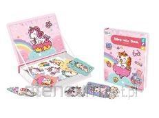 Magnetyczna Układanka Książka Jednorożce Puzzle Karty Zabawka rozwinie swoje funkcje poznawcze oraz nauczą się kreatywnego myślenia, koncentracji i samodzielności. W zestawie znajdują się karty przedstawiające słodkie jednorożce, zadaniem malucha jest ułożenie magnetycznych elementów według wzoru, aby całkowicie odwzorować dany obrazek. Puzzle będą służyć dziecku przez długi czas, dzięki możliwości tworzenia najróżniejszych, kreatywnych obrazków. Pisak pozwoli dopisać lub dorysować swoje elementy. Rozbudzi w dziecku zmysł artystyczny i będzie ćwiczyć logiczne myślenie. Zestaw składa się z 39 elementów. Opakowanie jest sztywne w formie książki, a plansza magnetyczna to wewnętrzna strona okładki. Elementy zestawu: - 6 dwustronnych kart z przykładowymi zwierzętami - magnesy - książka magnetyczna - pisak z gumką Wymiary opakowania: 27 cm x 21 cm x 4 cm Produkt przeznaczony jest dla dzieci powyżej 3 roku życia. Zabawka jest zgodna z normą EN71.