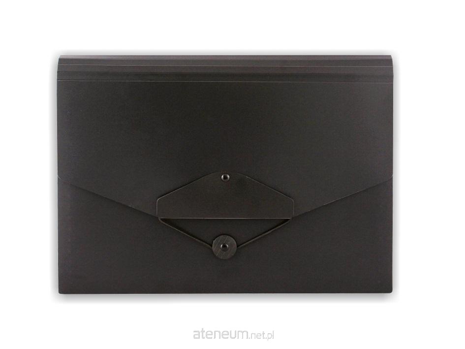 Zamykana na gumkę. Zawiera 12 przegródek dostosowanych do dokumentów formatu A4 oraz przekładki indeksujące.